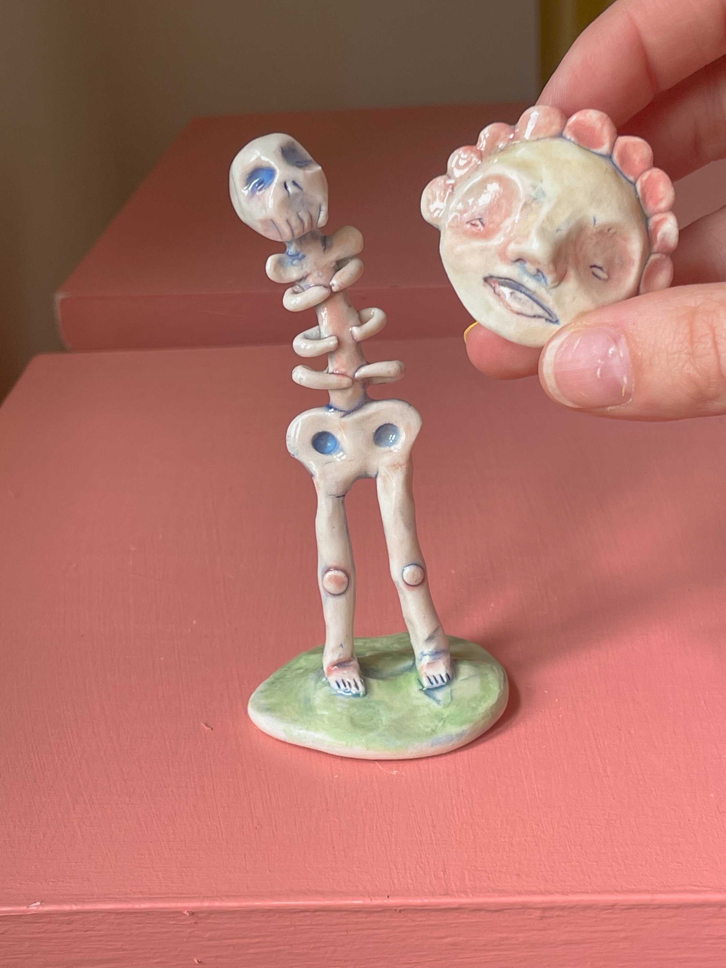 This two part, interactive sculpture allows you to decide how you’re feeling. Hand sculpted from porcelain and hand painted with underglaze.