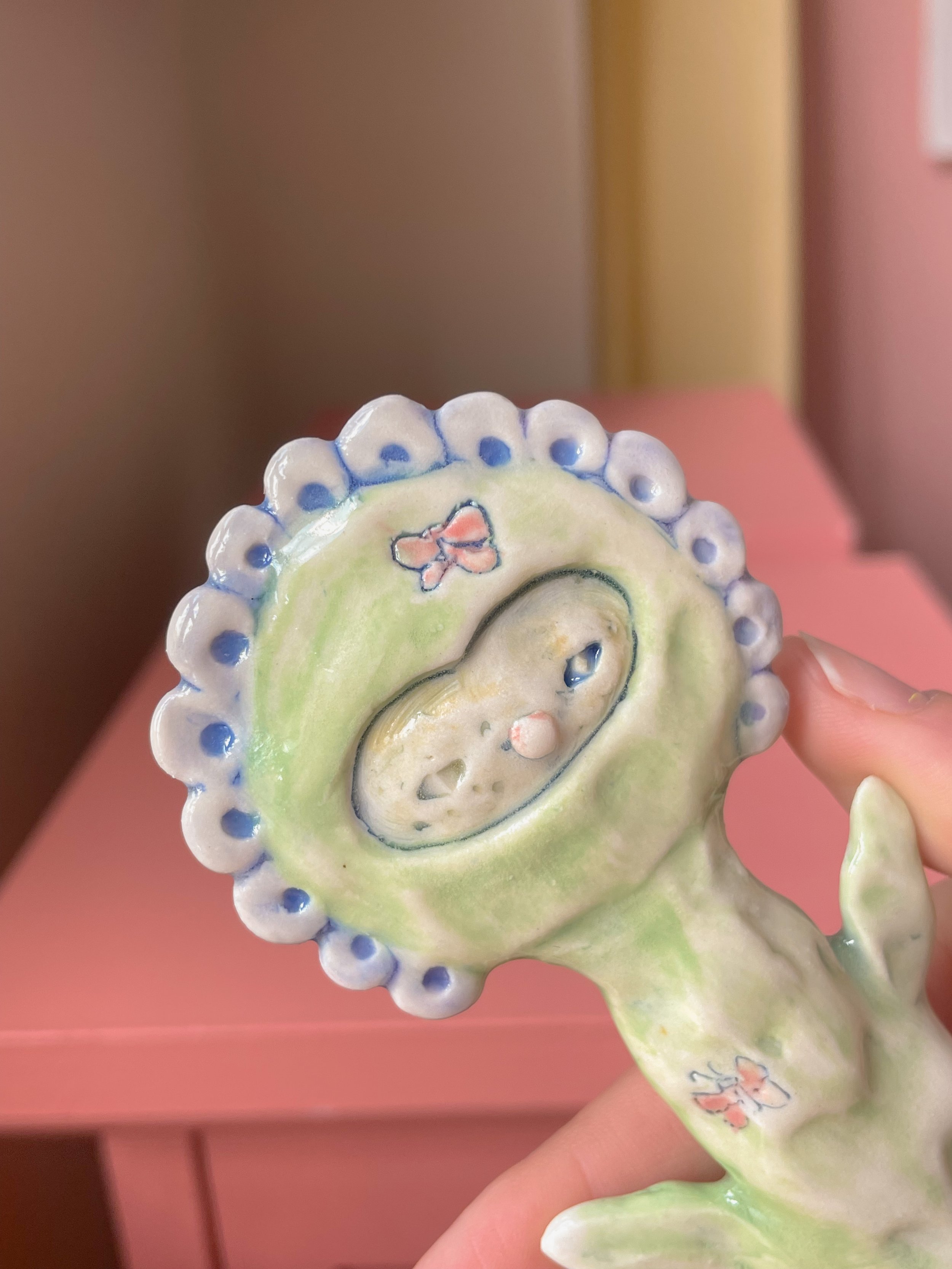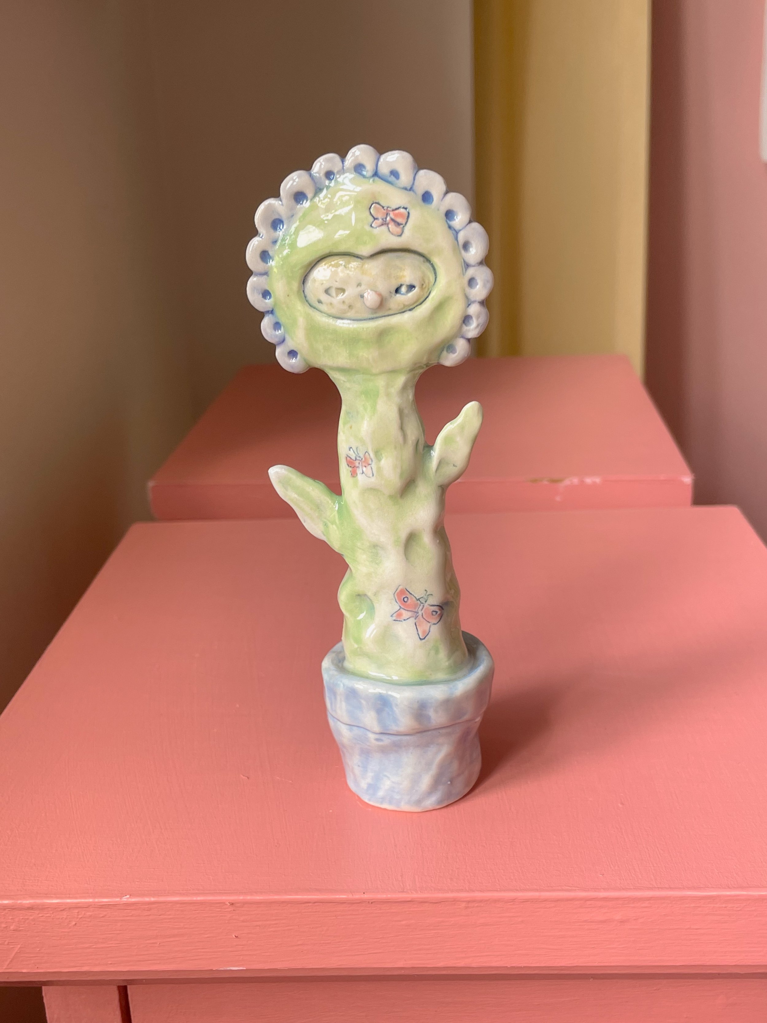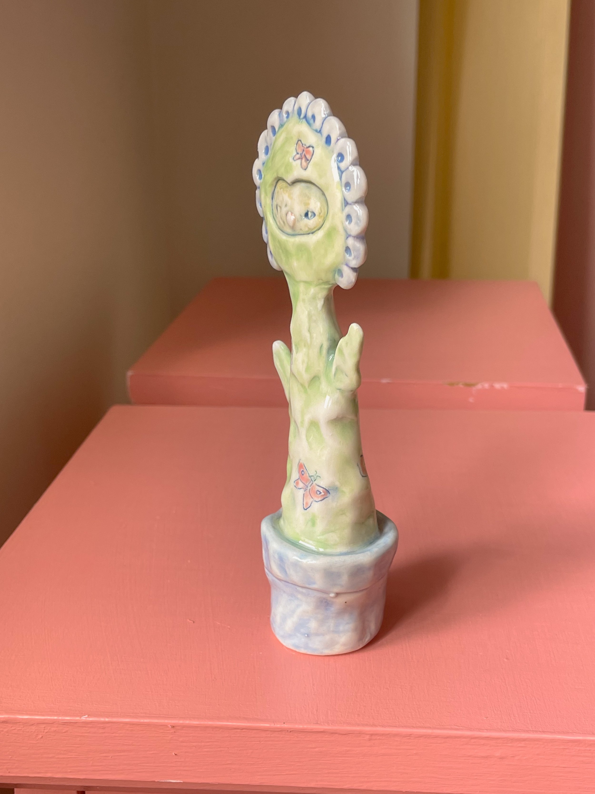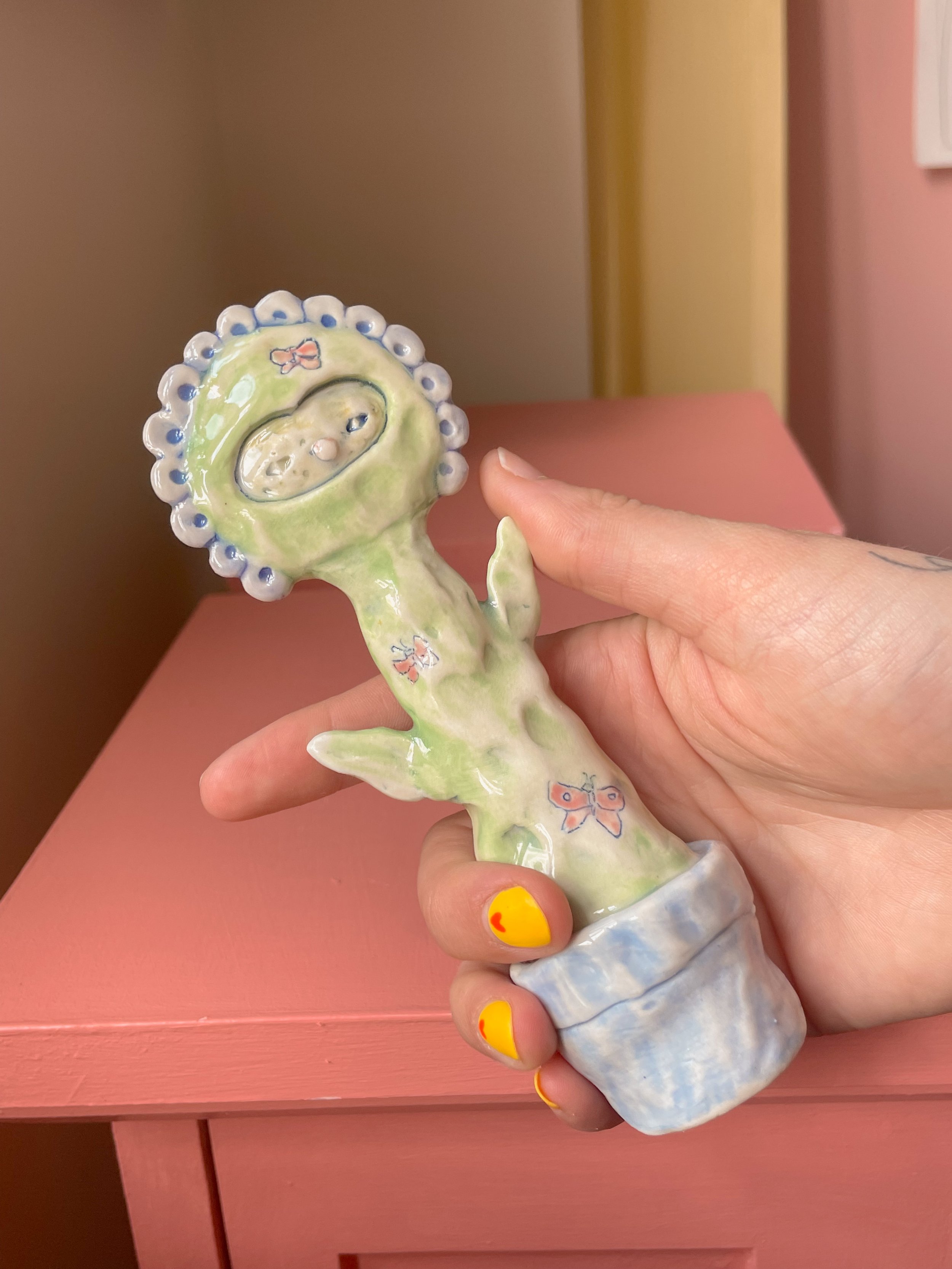 Shop <3 › Flower Friend with Butterflies <3 Image 1 of 7 Image 2 of 7 Image 3 of 7 Image 4 of 7 Image 5 of 7 Image 6 of 7 Image 7 of 7 Flower Friend with Butterflies <3 CA$140.00 sold out Handmade porcelain sculpture painted with underglaze and finished with a glossy clear glaze. <3 Sold Out Added! Handmade porcelain sculpture painted with underglaze and finished with a glossy clear glaze. <3