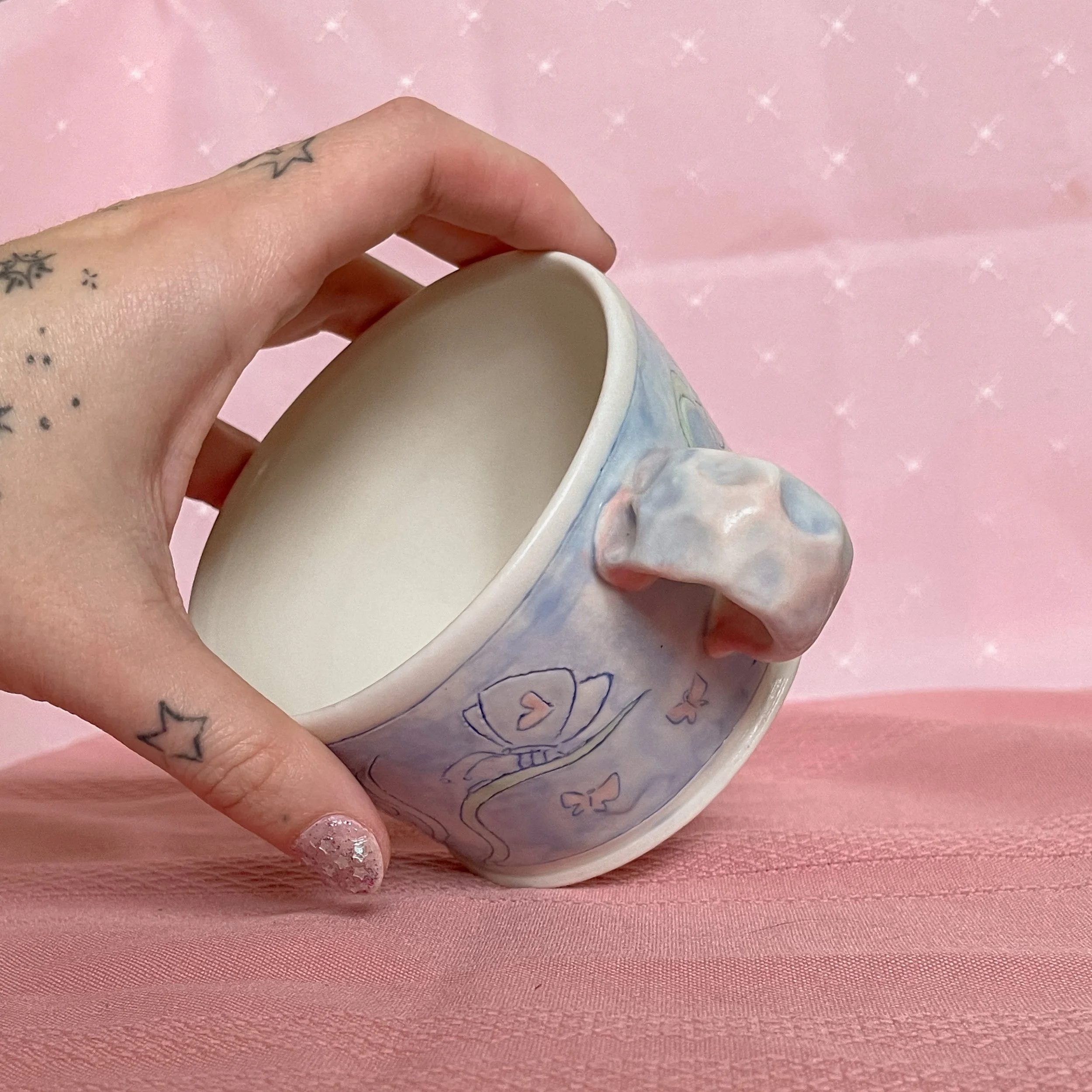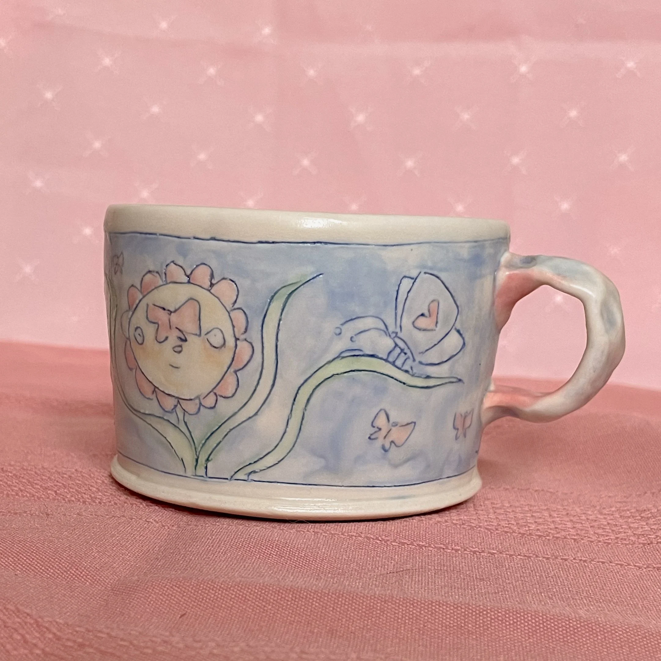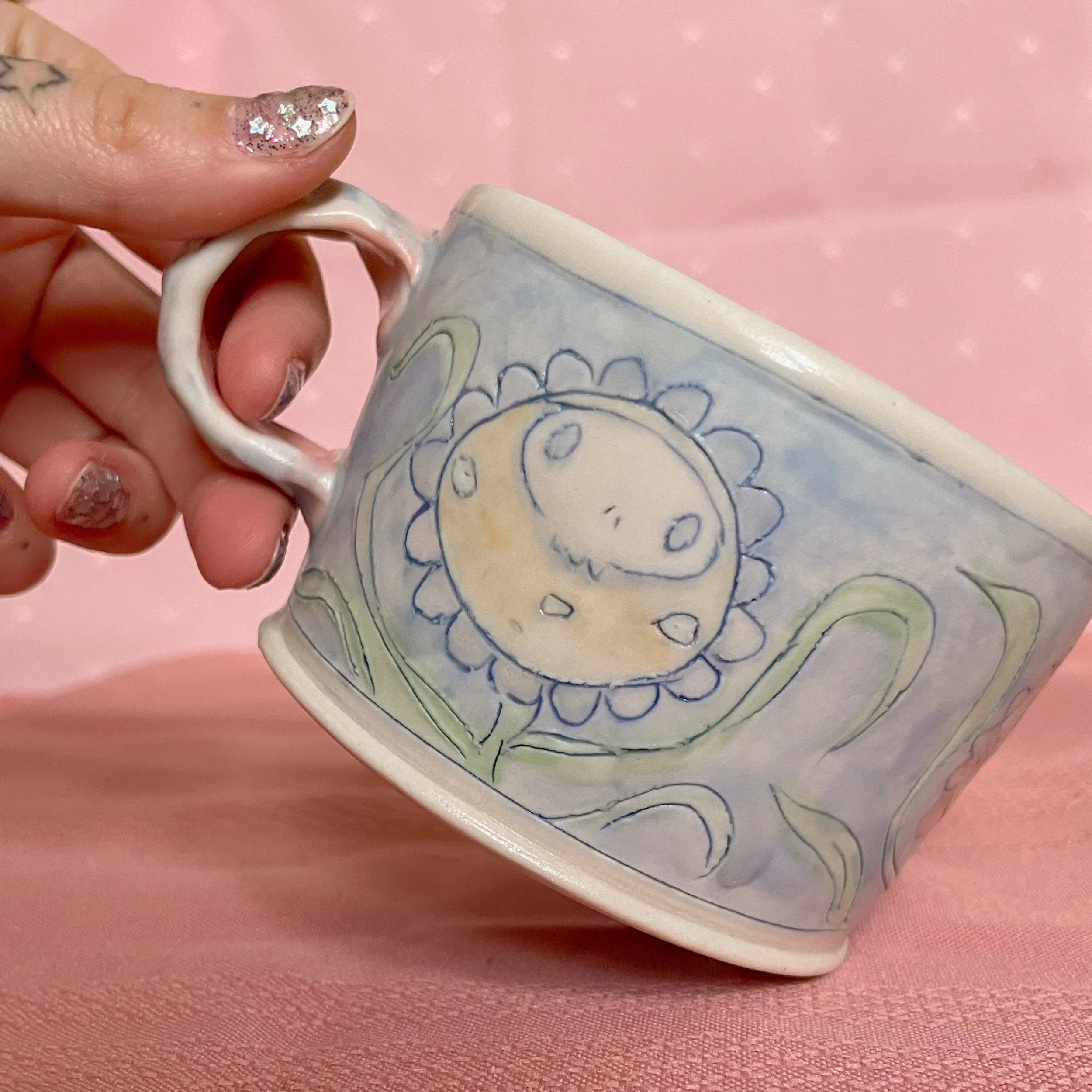Shop <3 › Flower Mug Image 1 of 5 Image 2 of 5 Image 3 of 5 Image 4 of 5 Image 5 of 5 Flower Mug CA$60.00 Each flower has a different thought on its mind. Handmade from porcelain. Add To Cart Added! Each flower has a different thought on its mind. Handmade from porcelain.