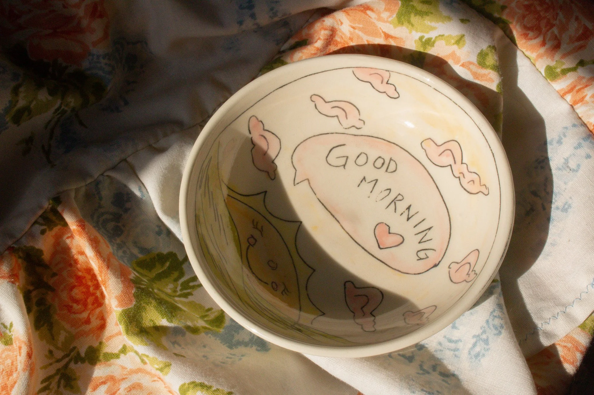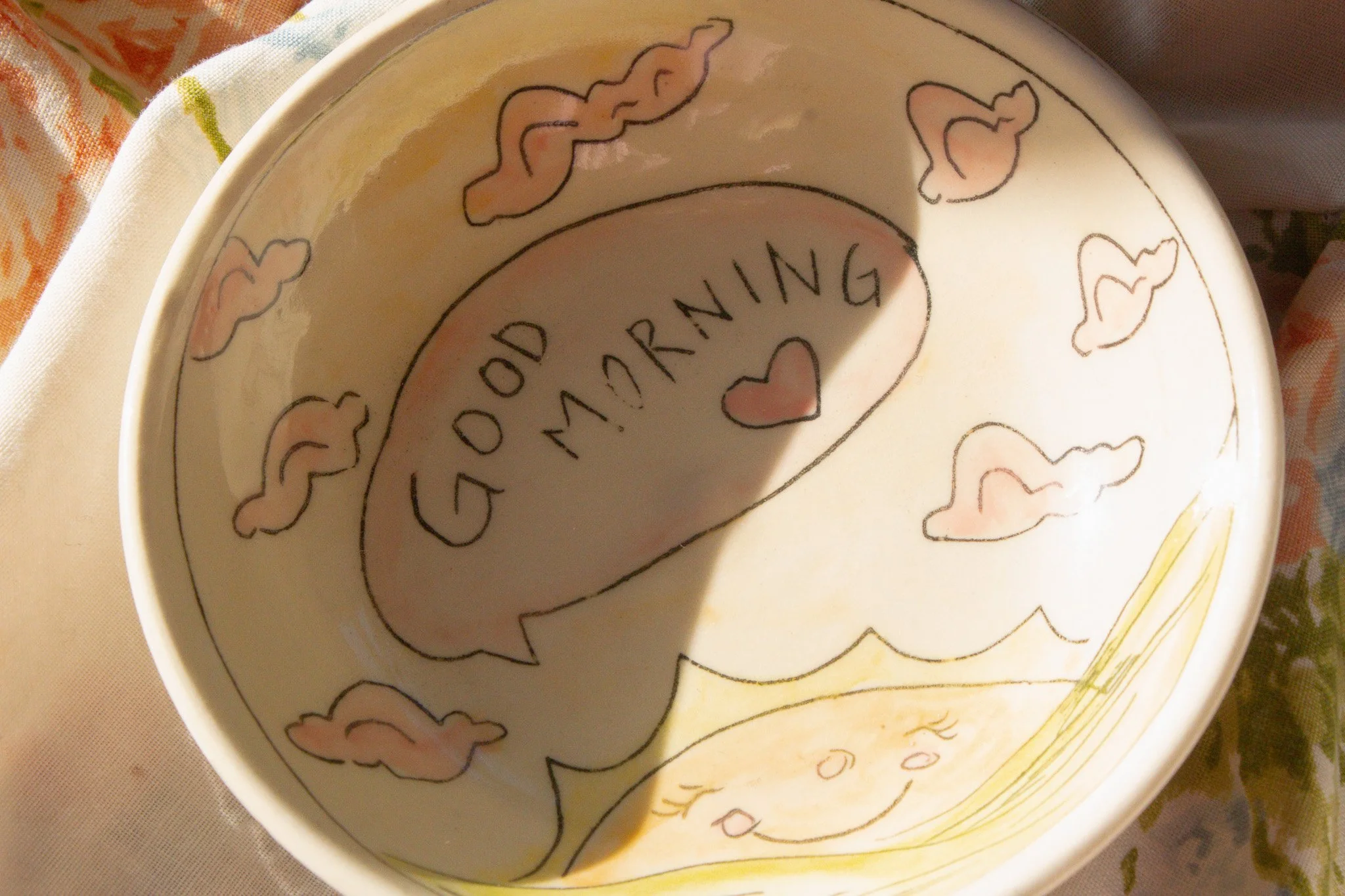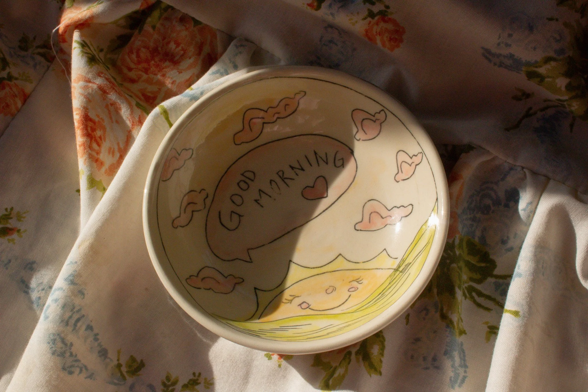 Shop <3 › Good Morning/Good night cereal bowl ♡ Image 1 of 4 Image 2 of 4 Image 3 of 4 Image 4 of 4 Good Morning/Good night cereal bowl ♡ CA$50.00 sold out Not just for cereal, this sweet bowl could be used for anything ♡ Sold Out Added! Not just for cereal, this sweet bowl could be used for anything ♡