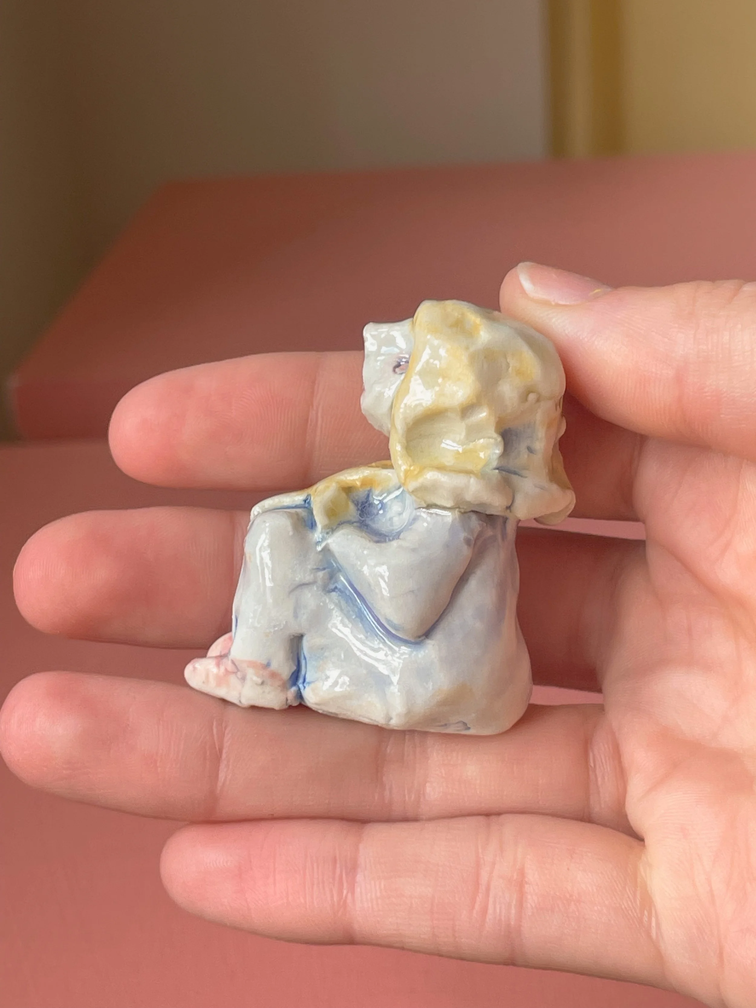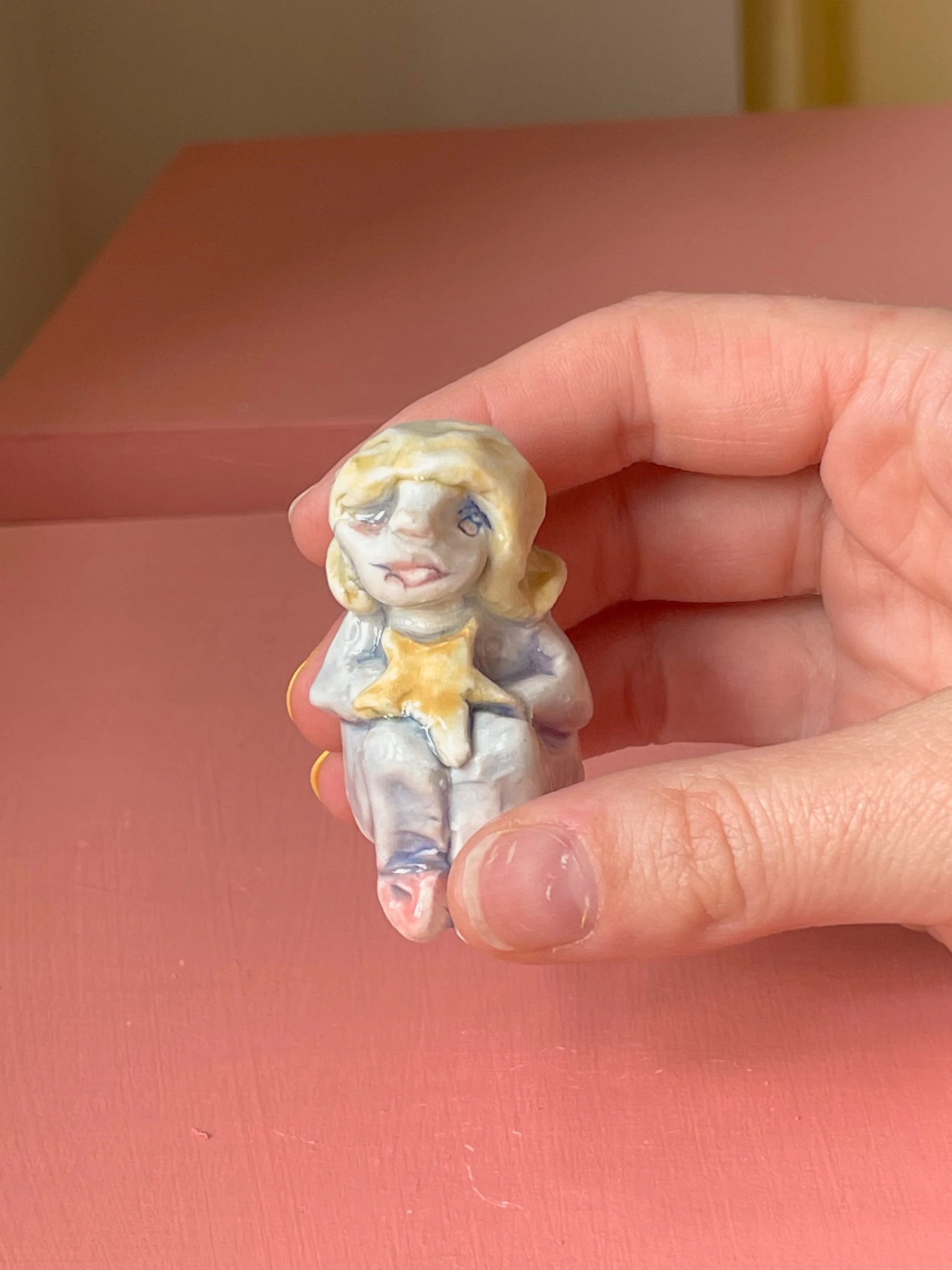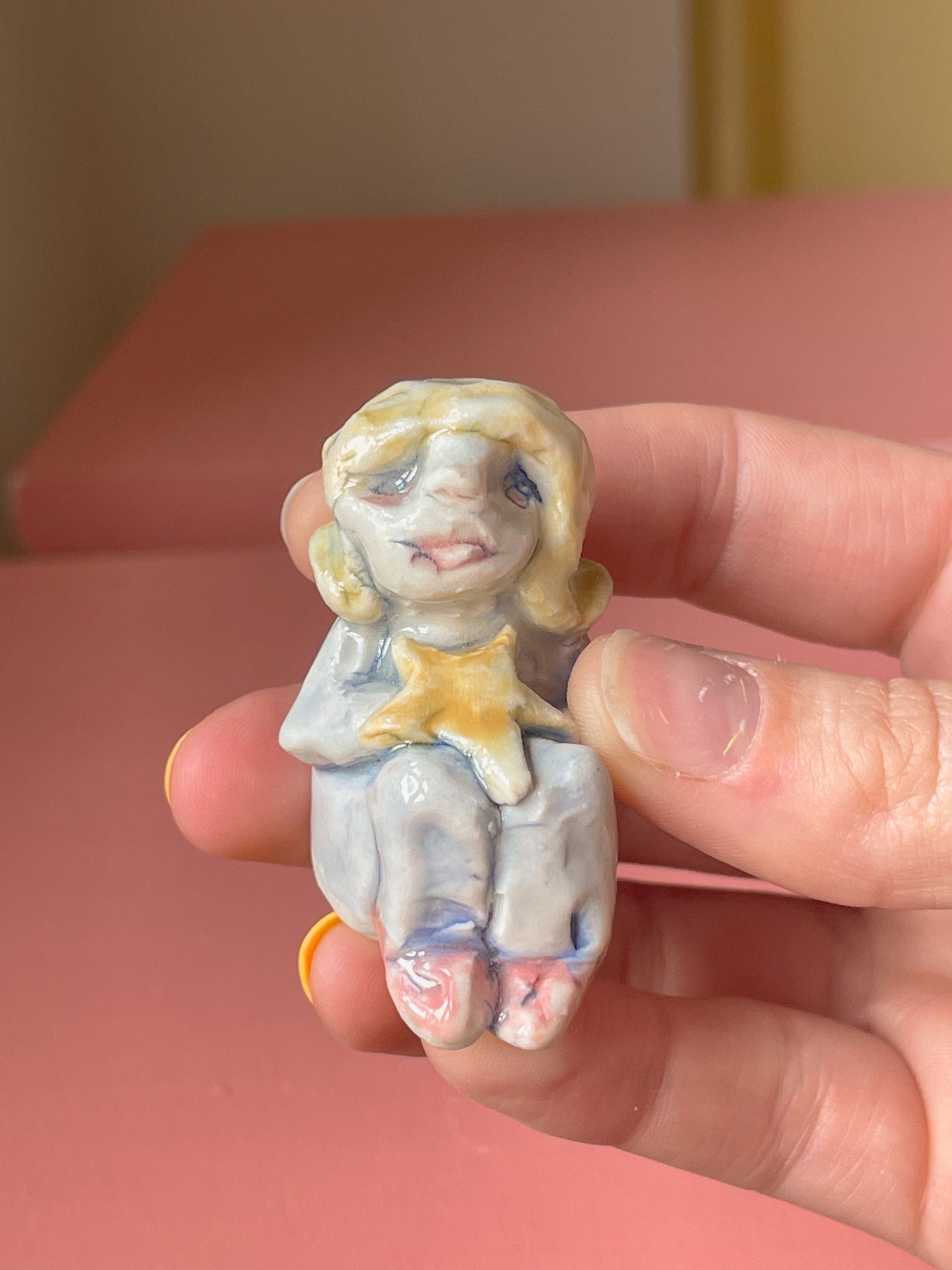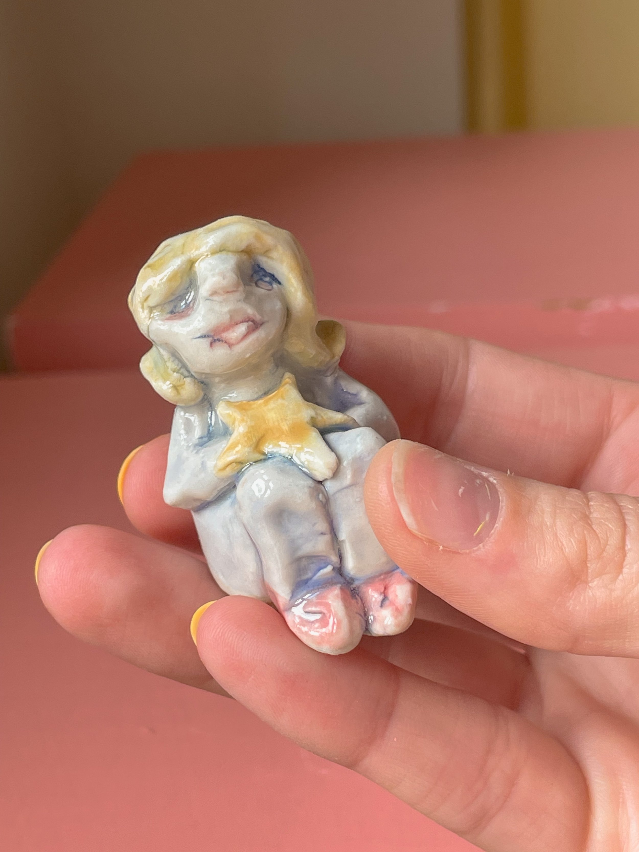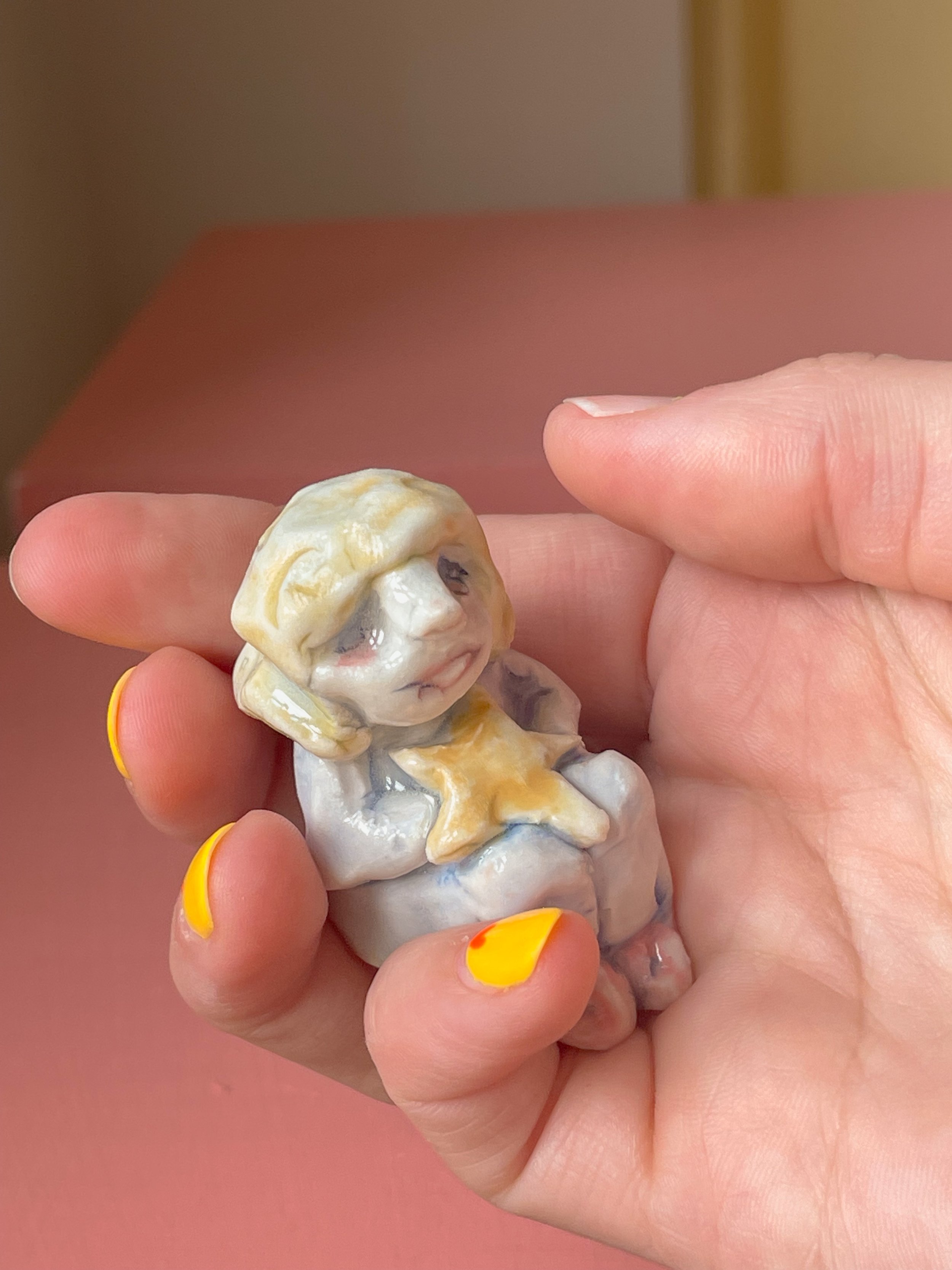 Handmade porcelain sculpture hand painted with underglaze and finished with a glossy clear glaze. The perfect object to hold in your hands while making wishes. <3