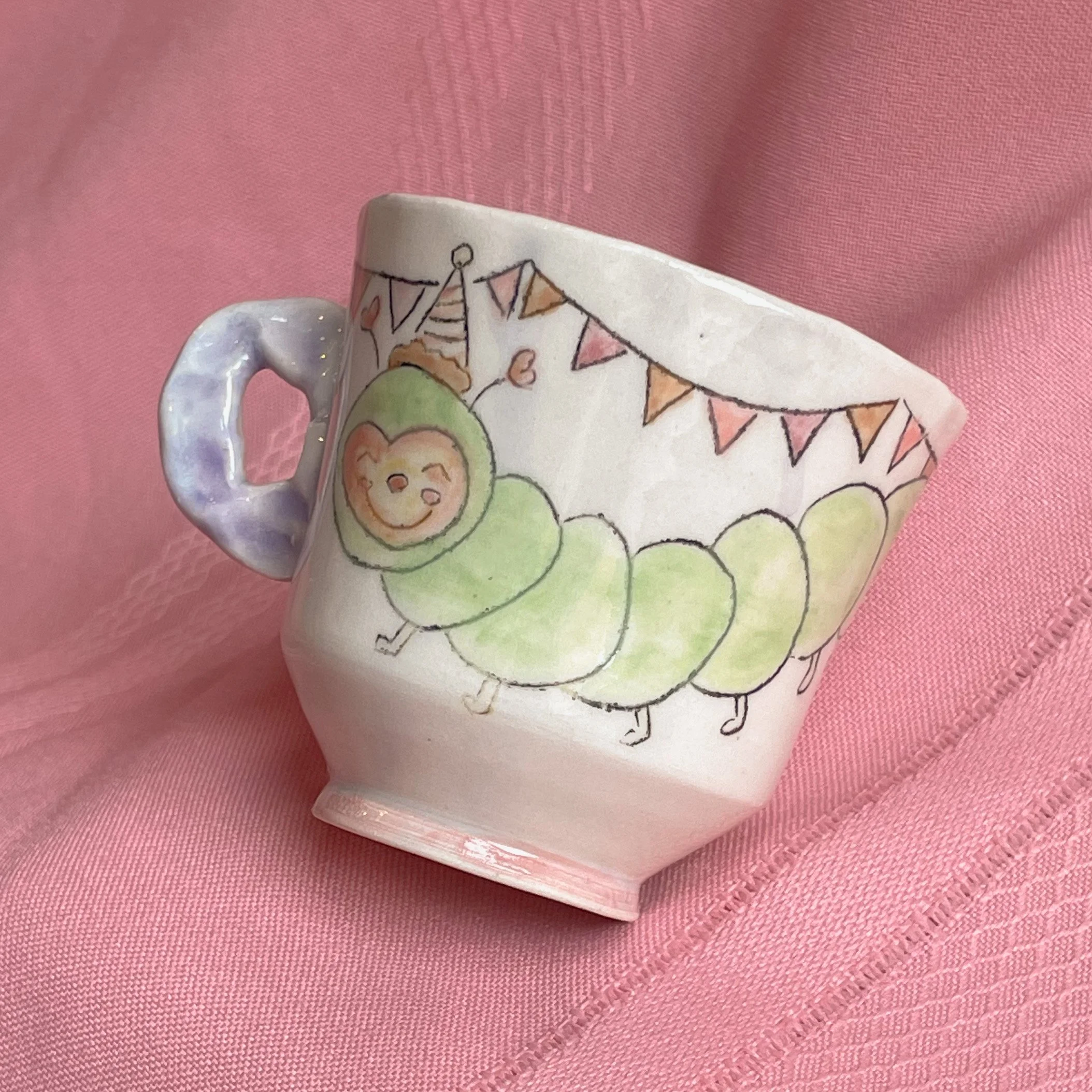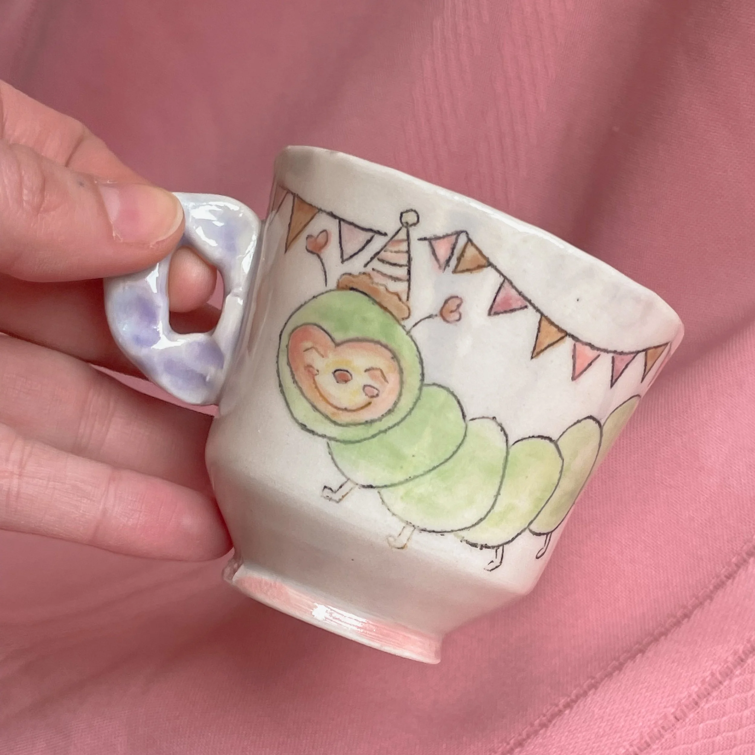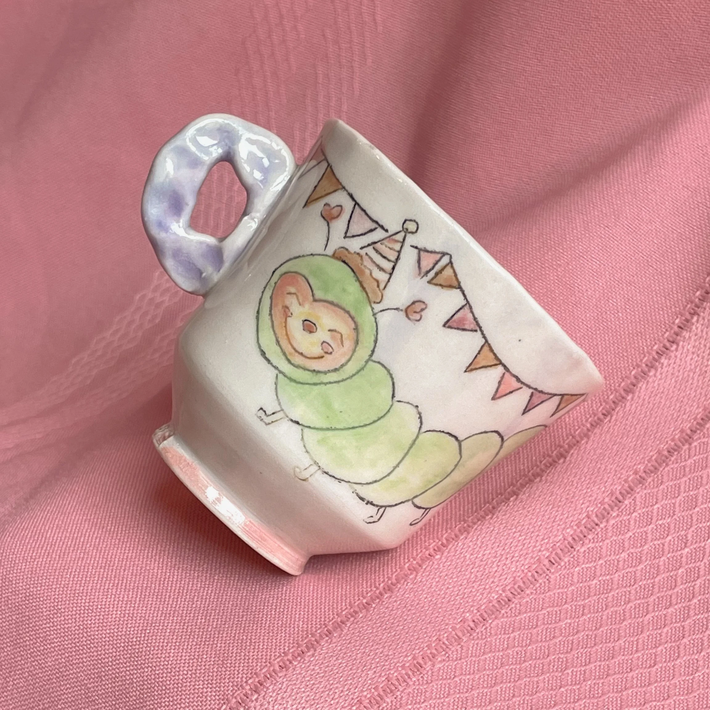 Lets all sing happy birthday to this sweet little birthday caterpillar ❤ It wont be very long until you’re a beautiful butterfly. This mug is made out of porcelain with a pinched handle for tactility. ❤