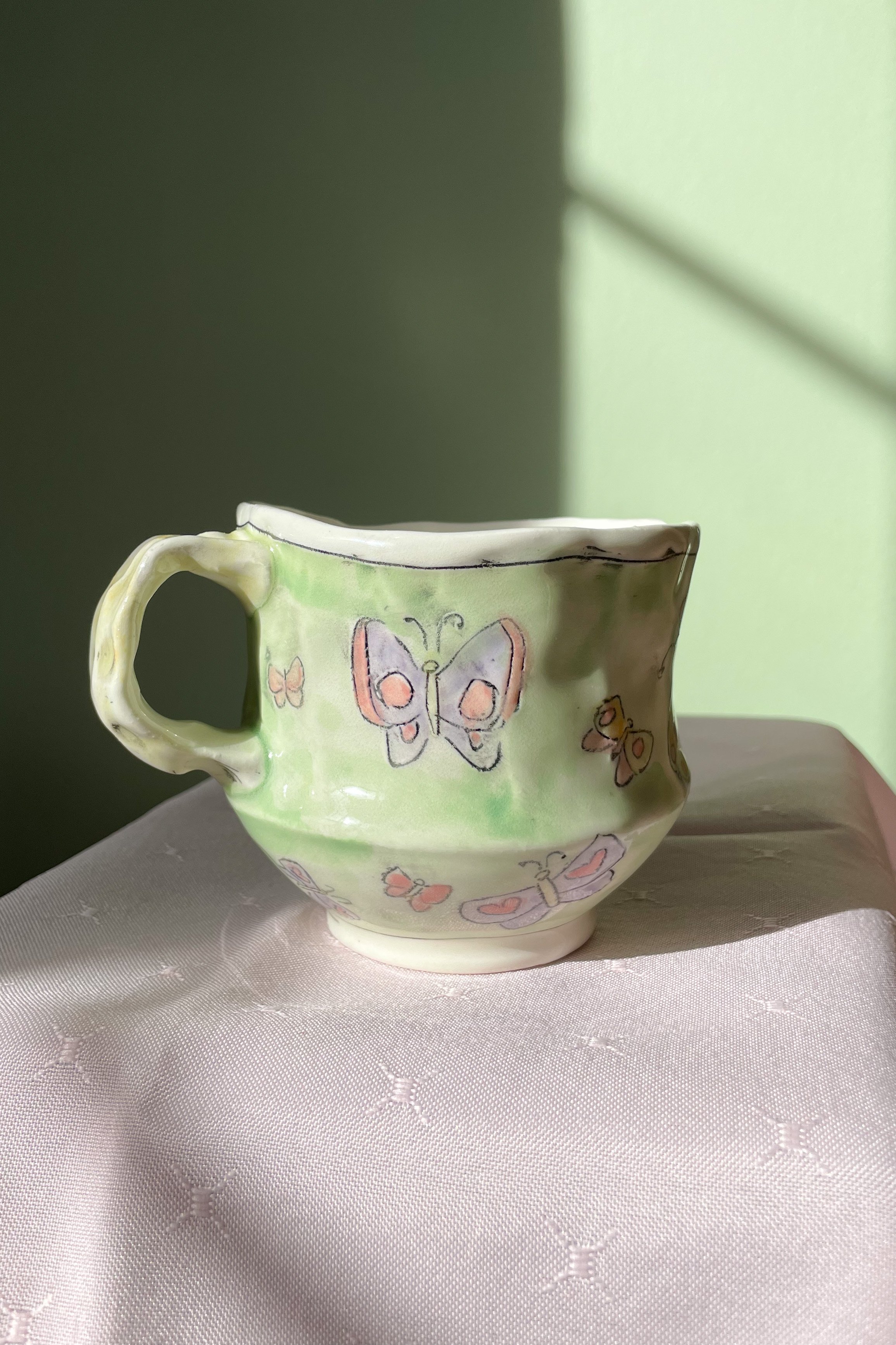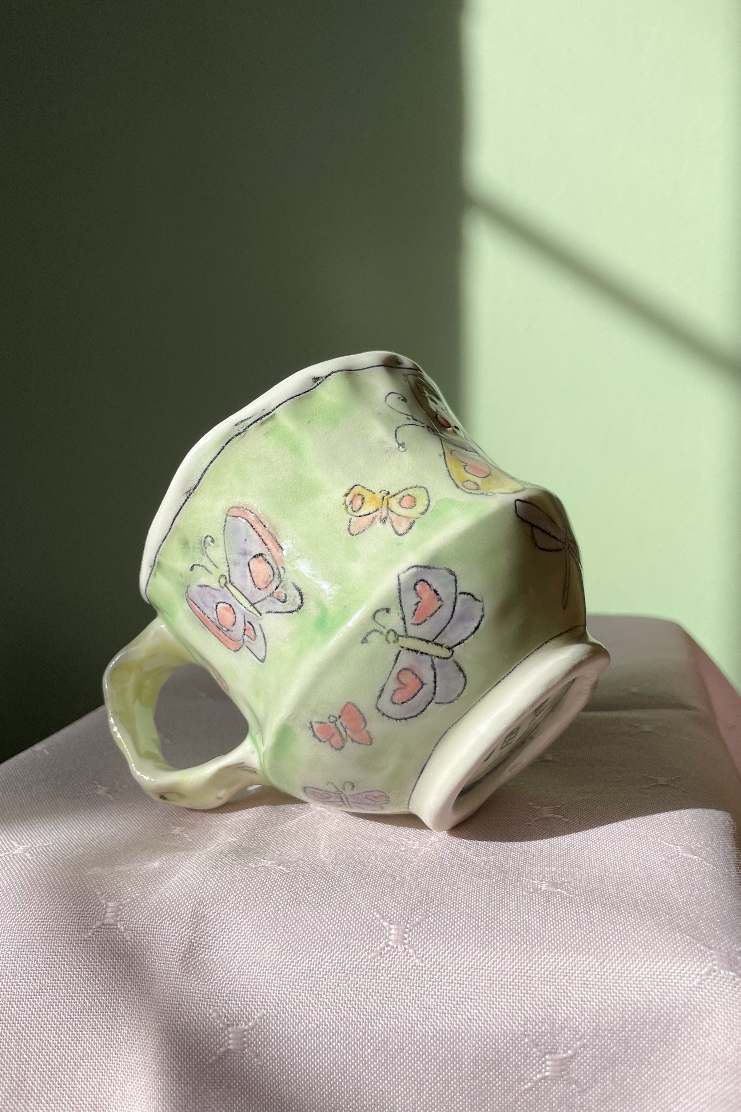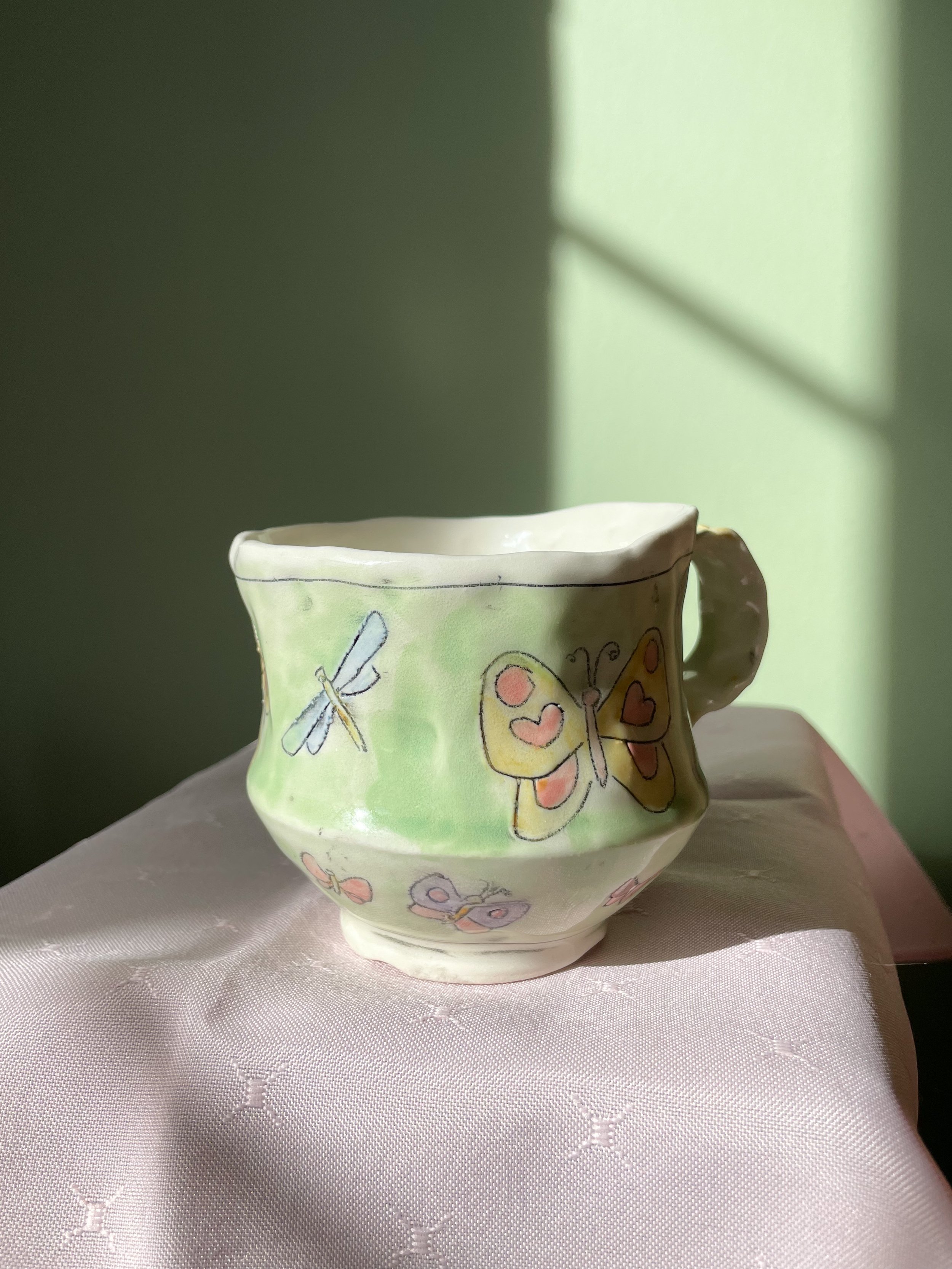 Shop <3 › Love Bug Mug -green and buggy <3 Image 1 of 6 Image 2 of 6 Image 3 of 6 Image 4 of 6 Image 5 of 6 Image 6 of 6 Love Bug Mug -green and buggy <3 CA$65.00 Hand made porcelain mug <3 Green and buggy its perfect for your favourite tea or your morning coffee<3 Add To Cart Added! Hand made porcelain mug <3 Green and buggy its perfect for your favourite tea or your morning coffee<3