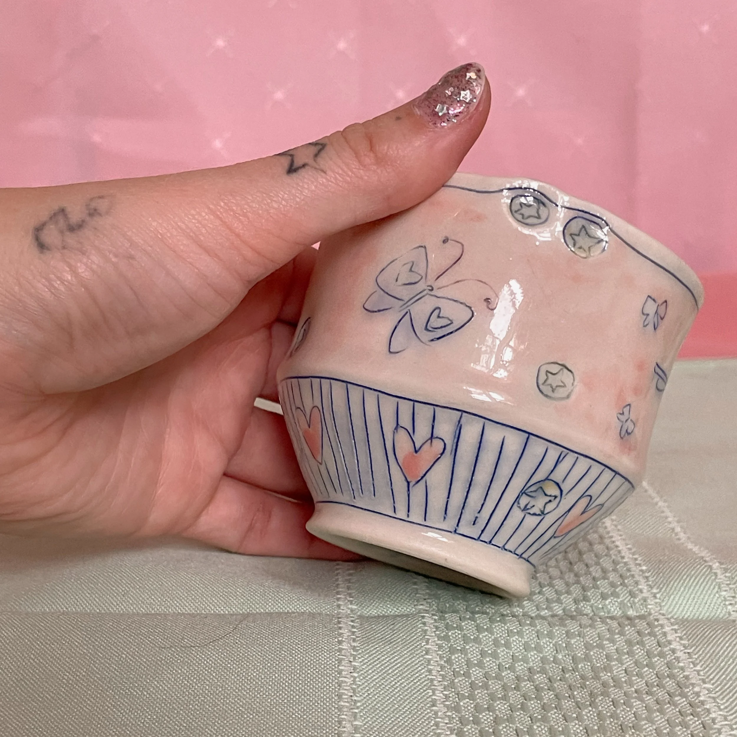 So cute and pretty, your girlfriend would love this cup for her birthday. Handmade from porcelain, hand painted and finished with a glossy glaze.