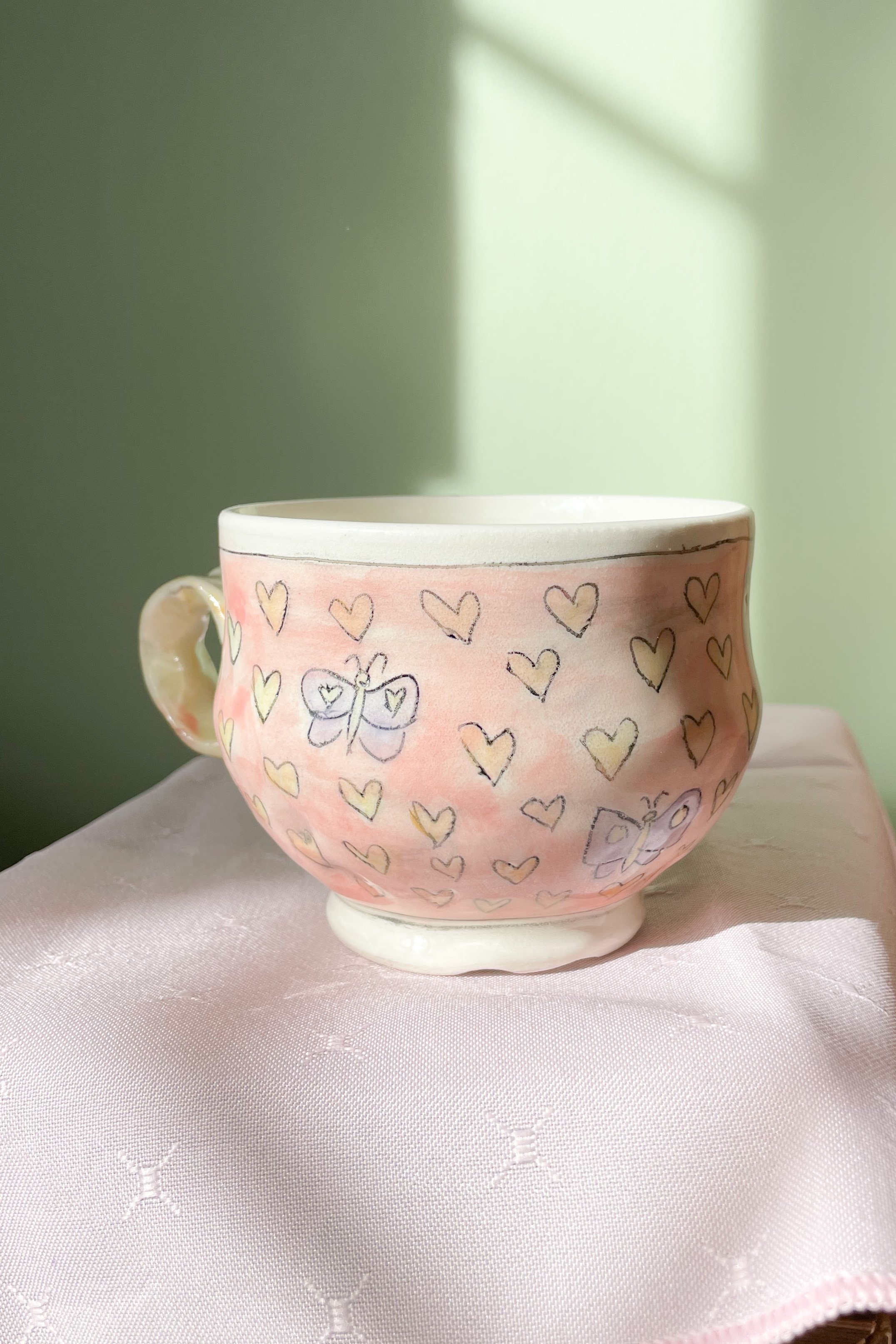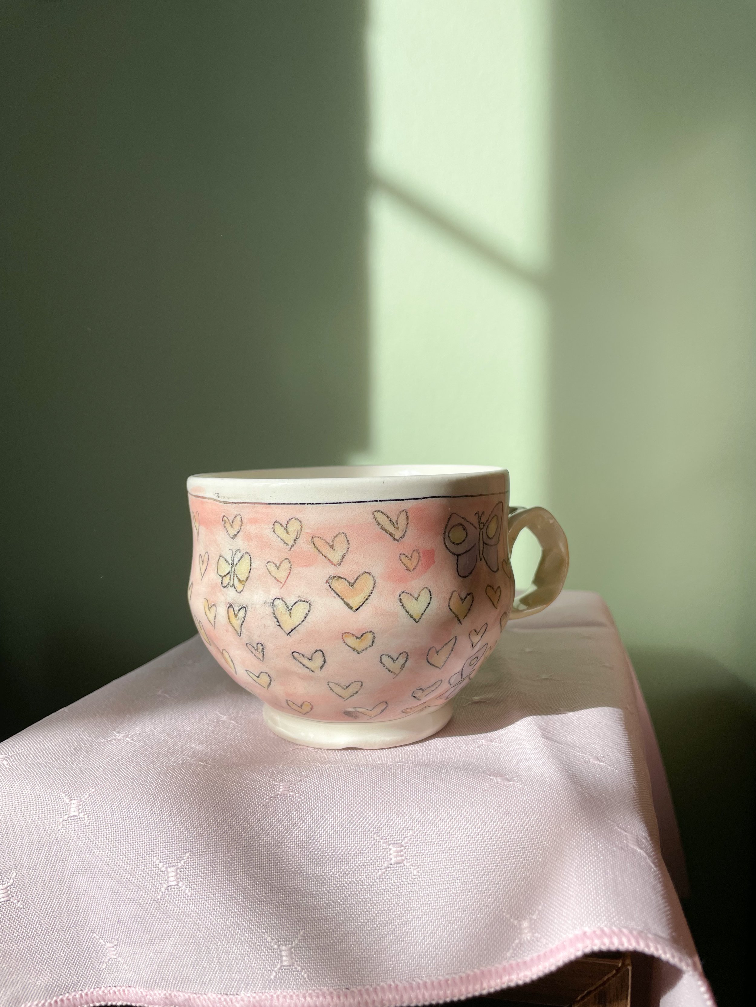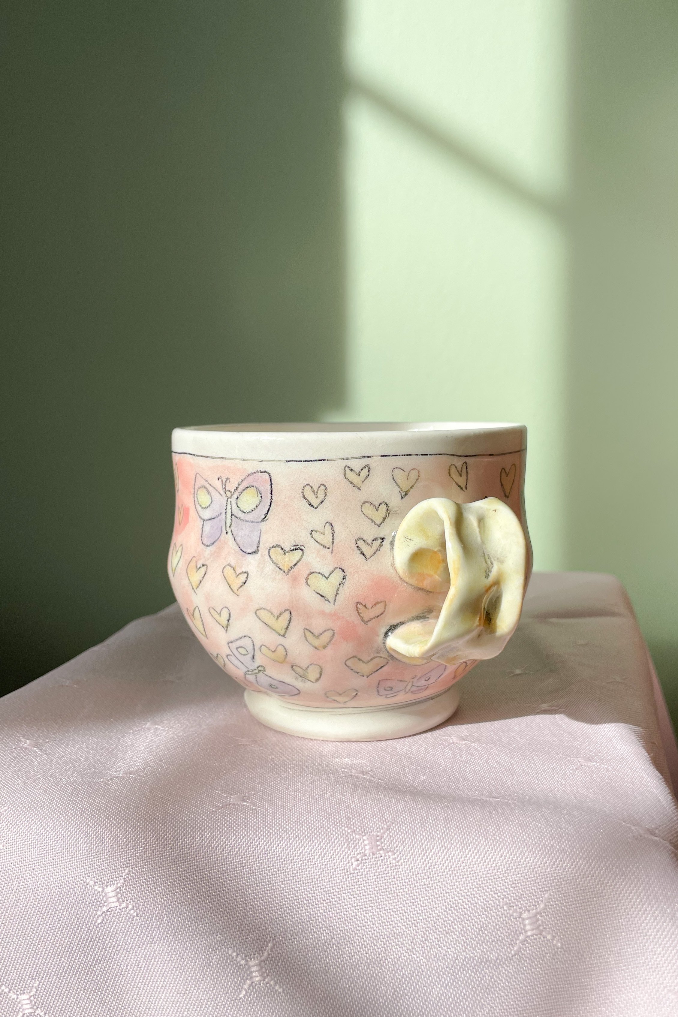 This mug is perfect for your fav coffee or fav tea. Its big enough to hold anything you like to drink! Made from porcelain, its hand thrown, carved and decorated with love <3