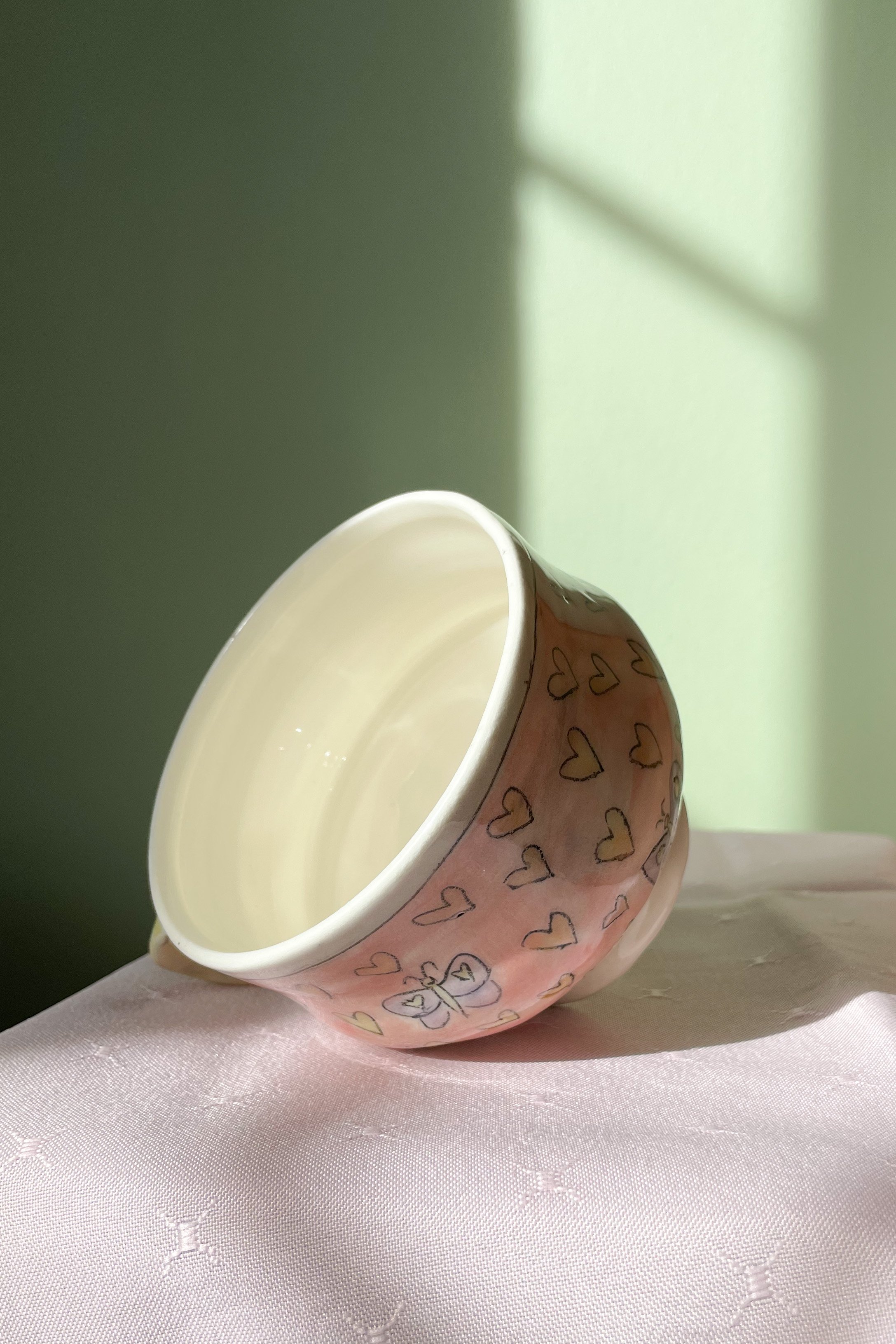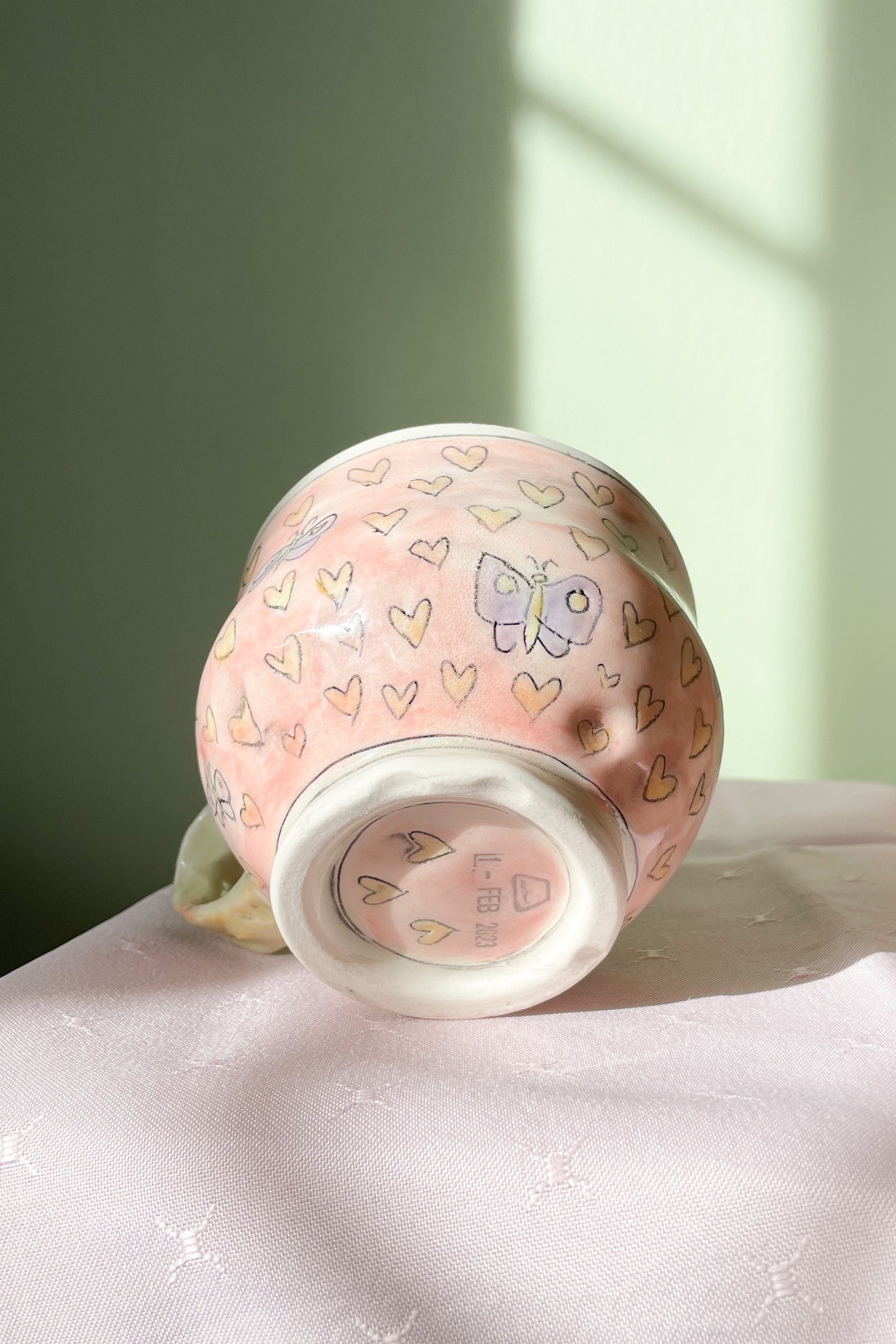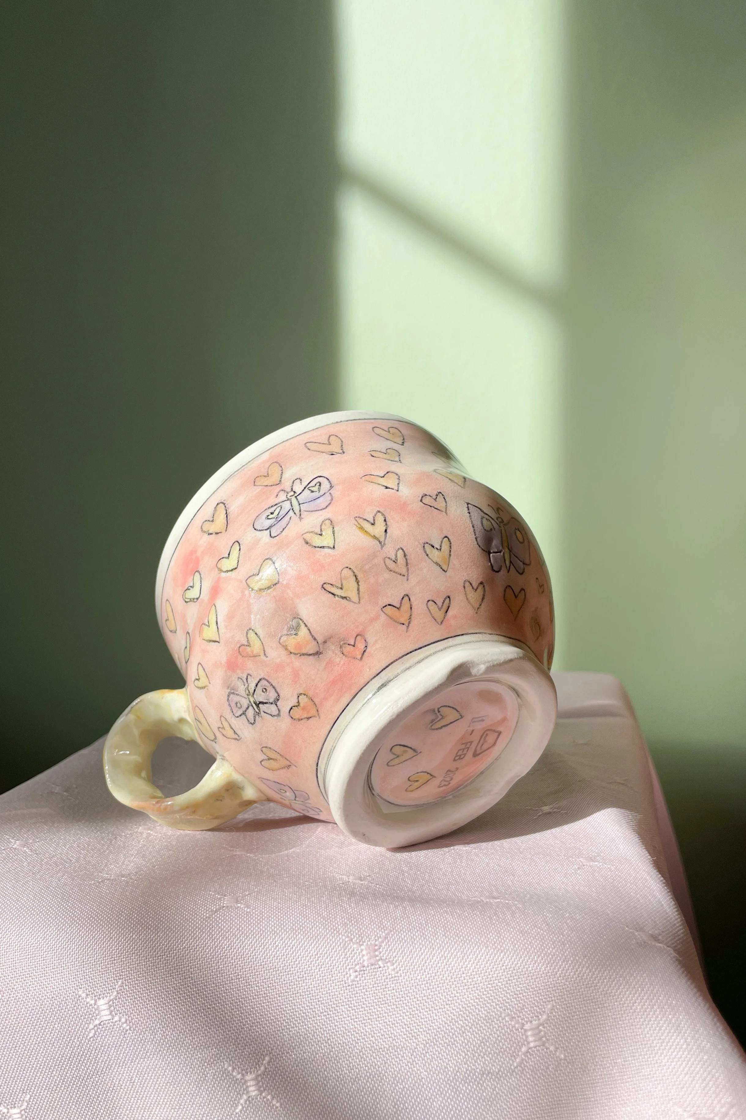 This mug is perfect for your fav coffee or fav tea. Its big enough to hold anything you like to drink! Made from porcelain, its hand thrown, carved and decorated with love <3