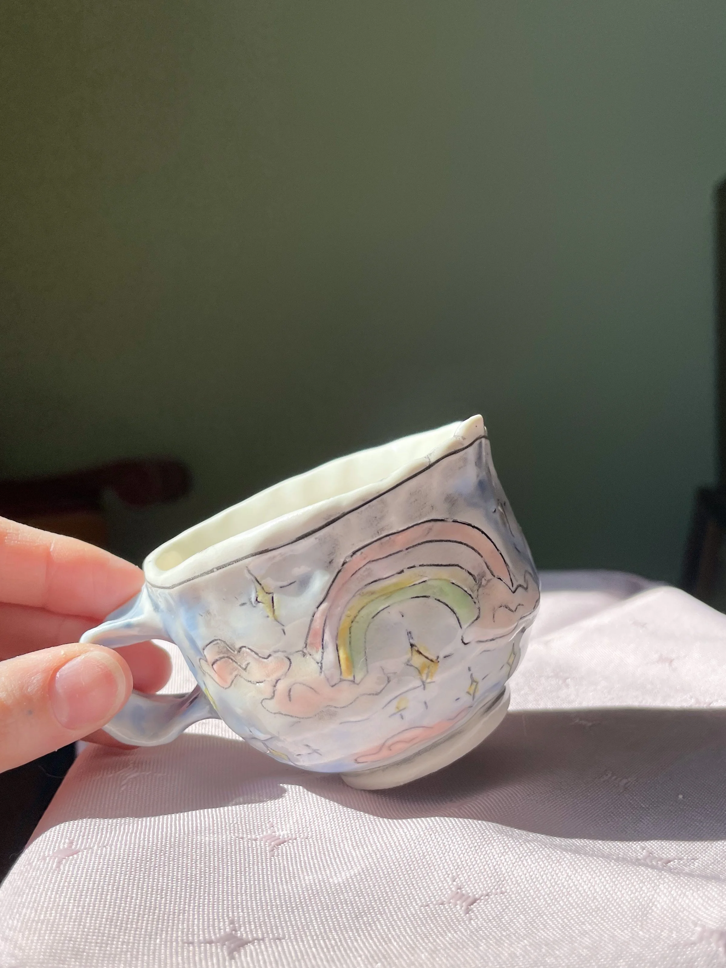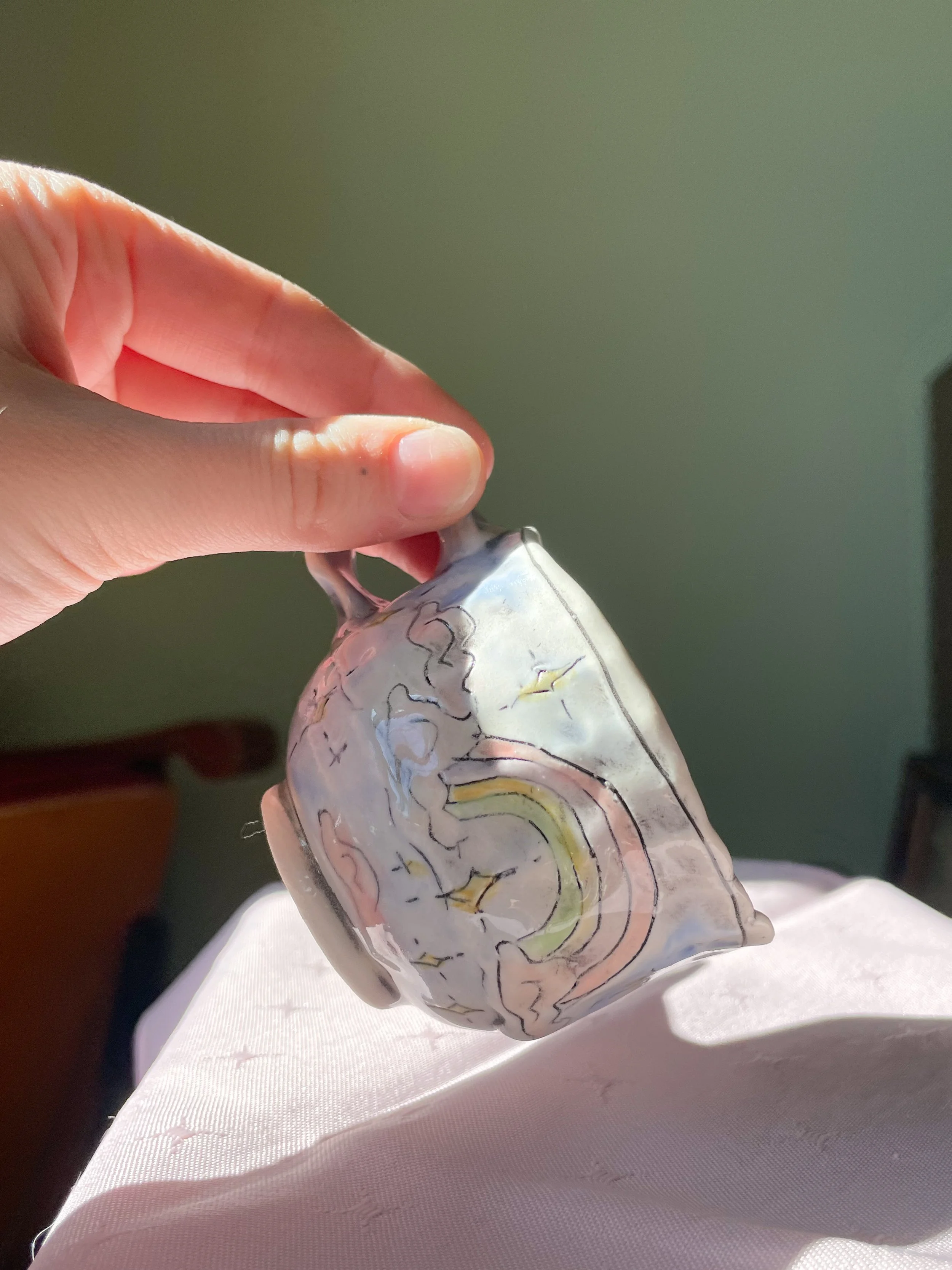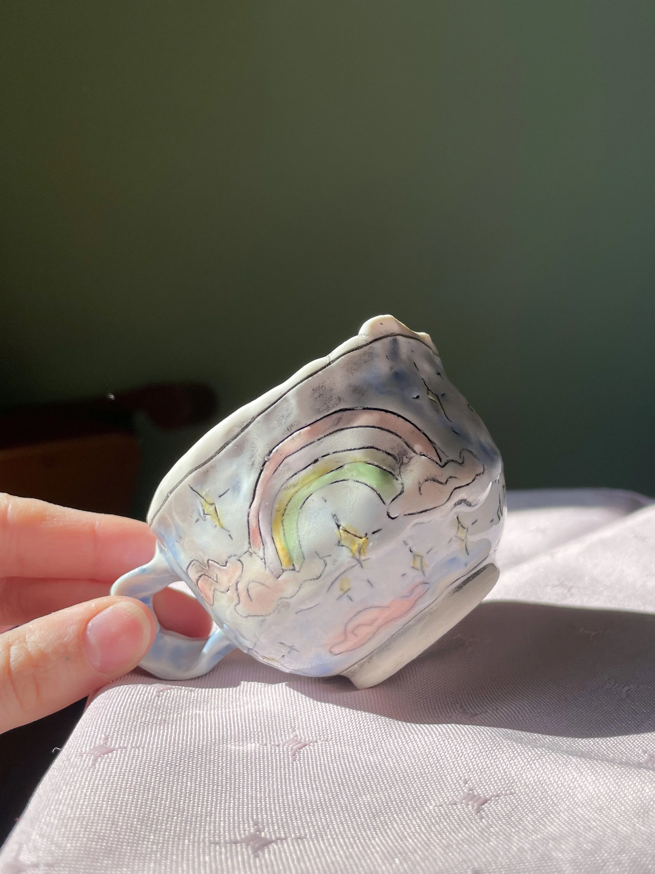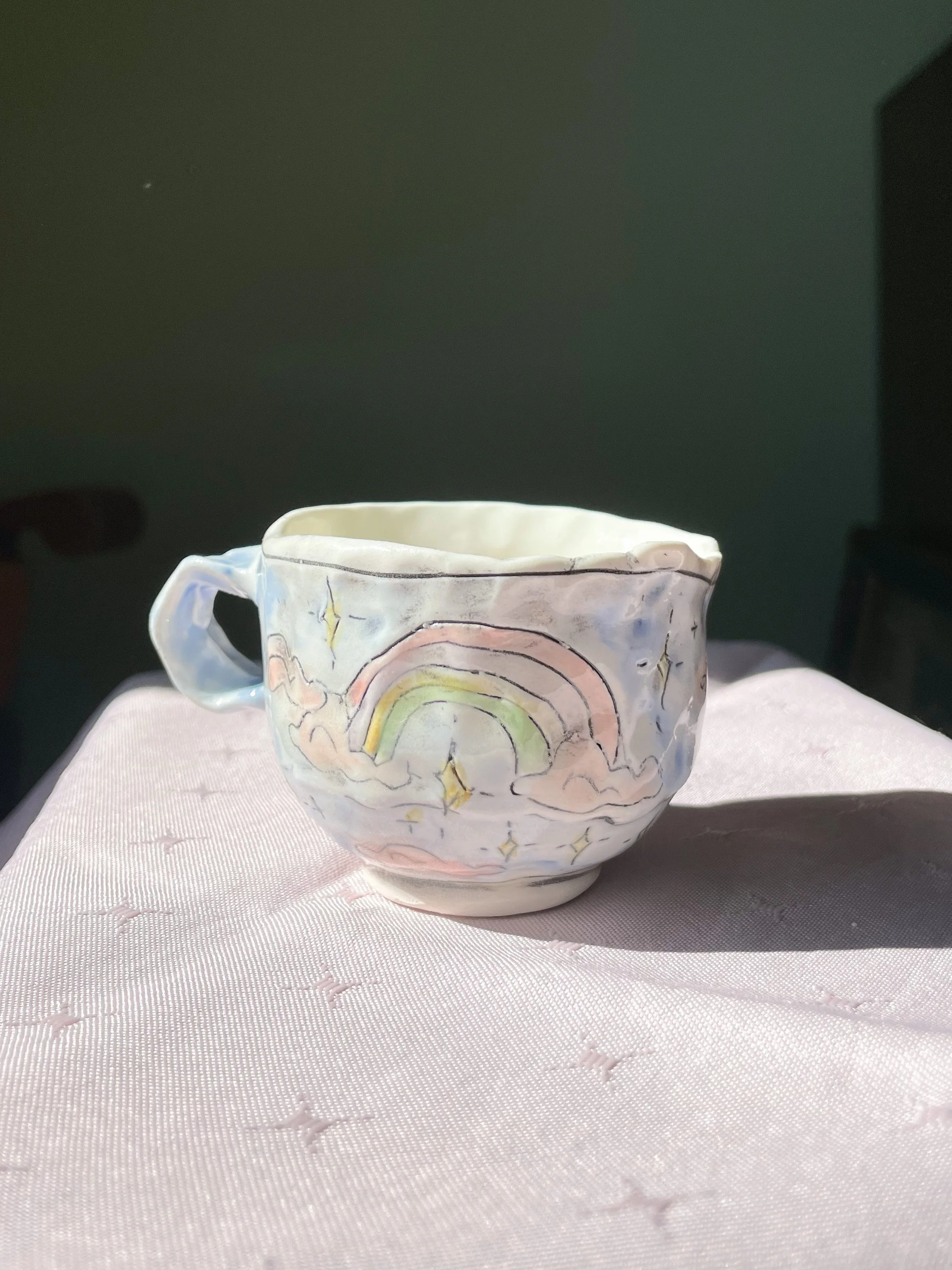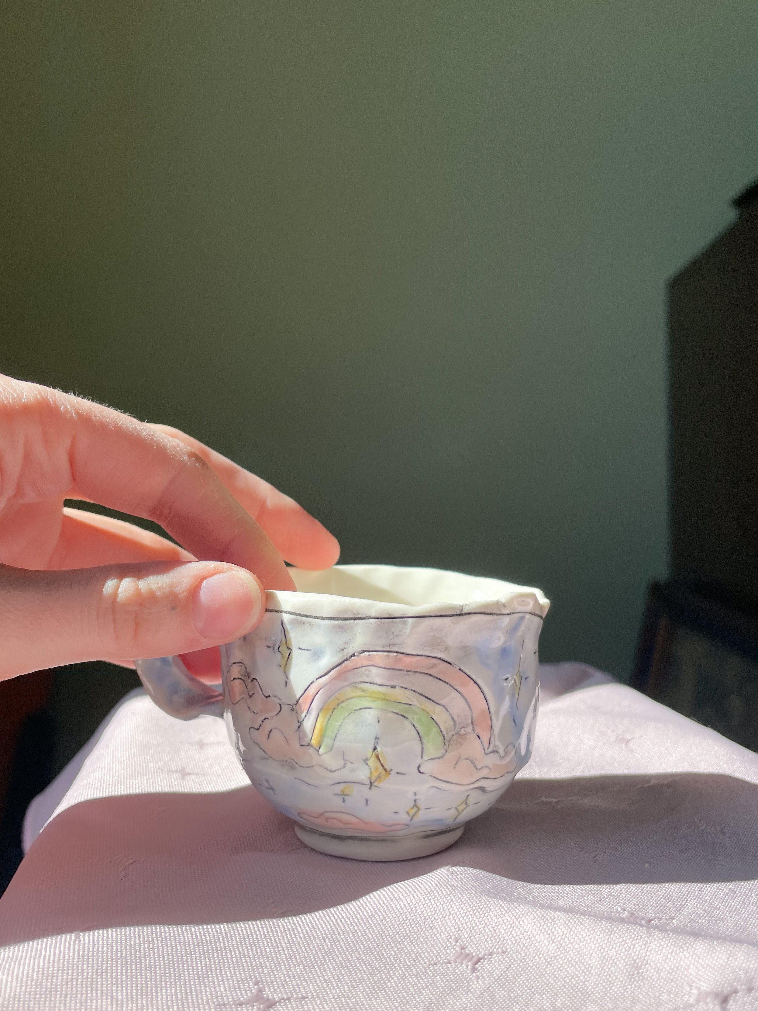 Shop <3 › Small rainbow mug <3 Image 1 of 7 Image 2 of 7 Image 3 of 7 Image 4 of 7 Image 5 of 7 Image 6 of 7 Image 7 of 7 Small rainbow mug <3 CA$45.00 sold out Perfect for your fav little cup of coffee or tea <3 Sold Out Added! Perfect for your fav little cup of coffee or tea <3