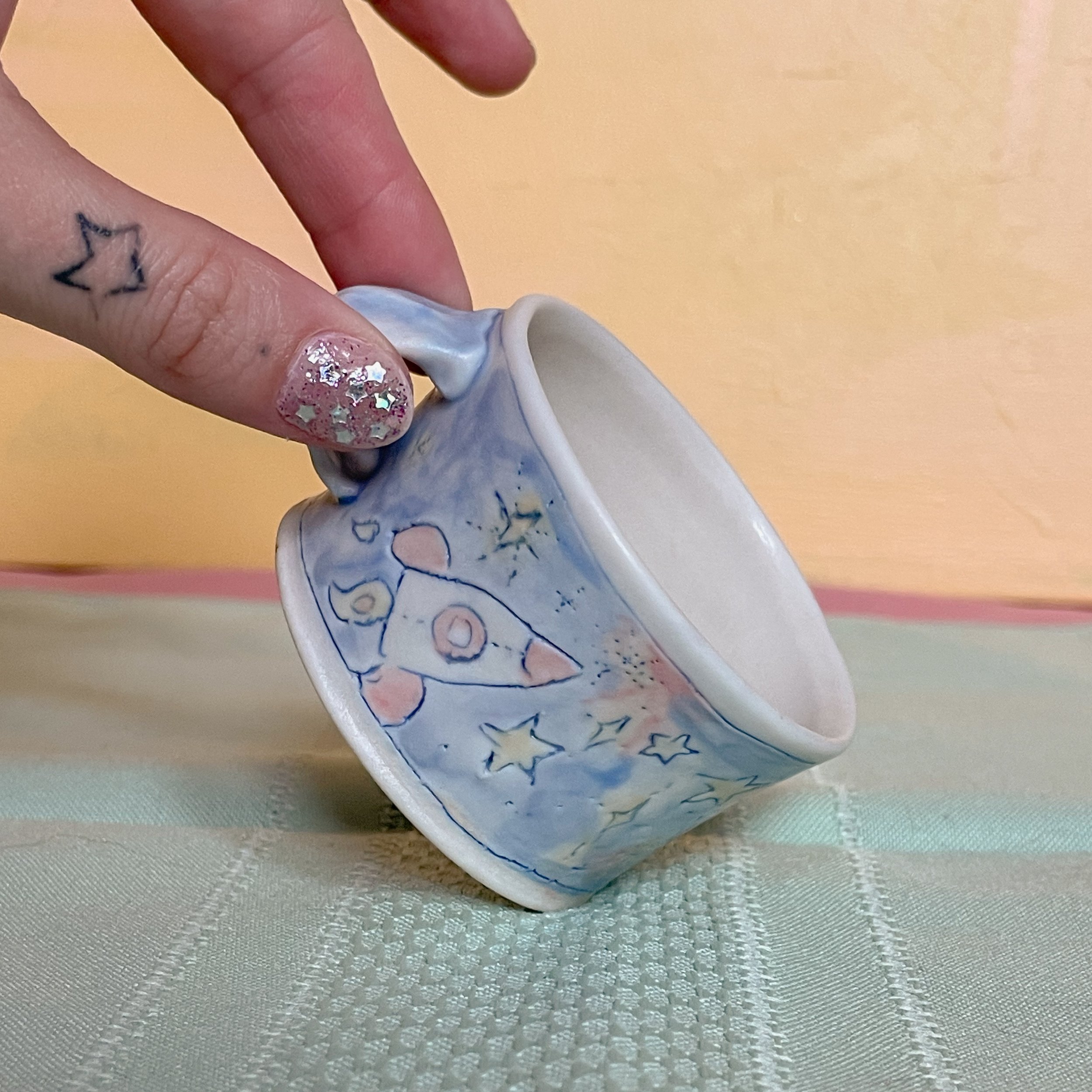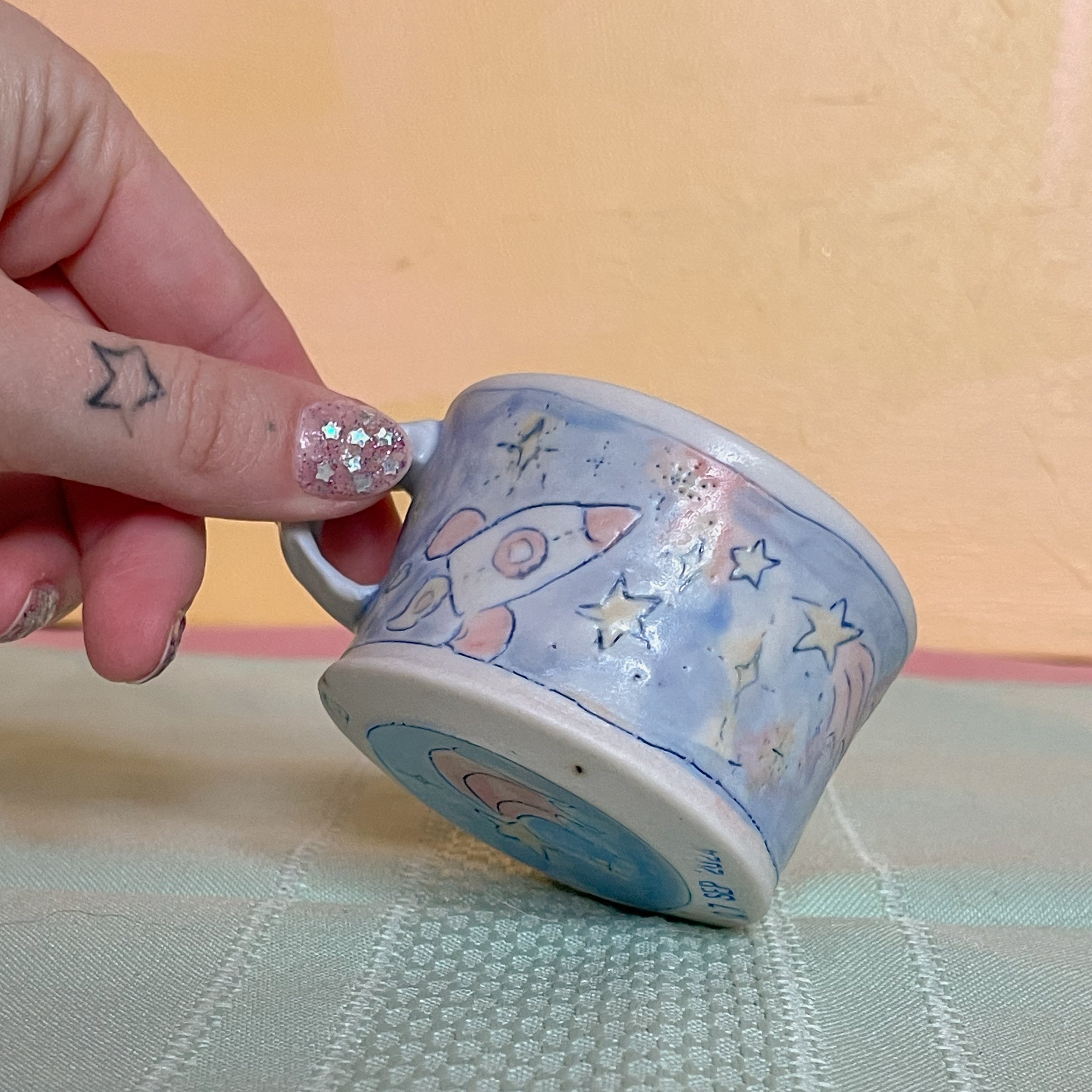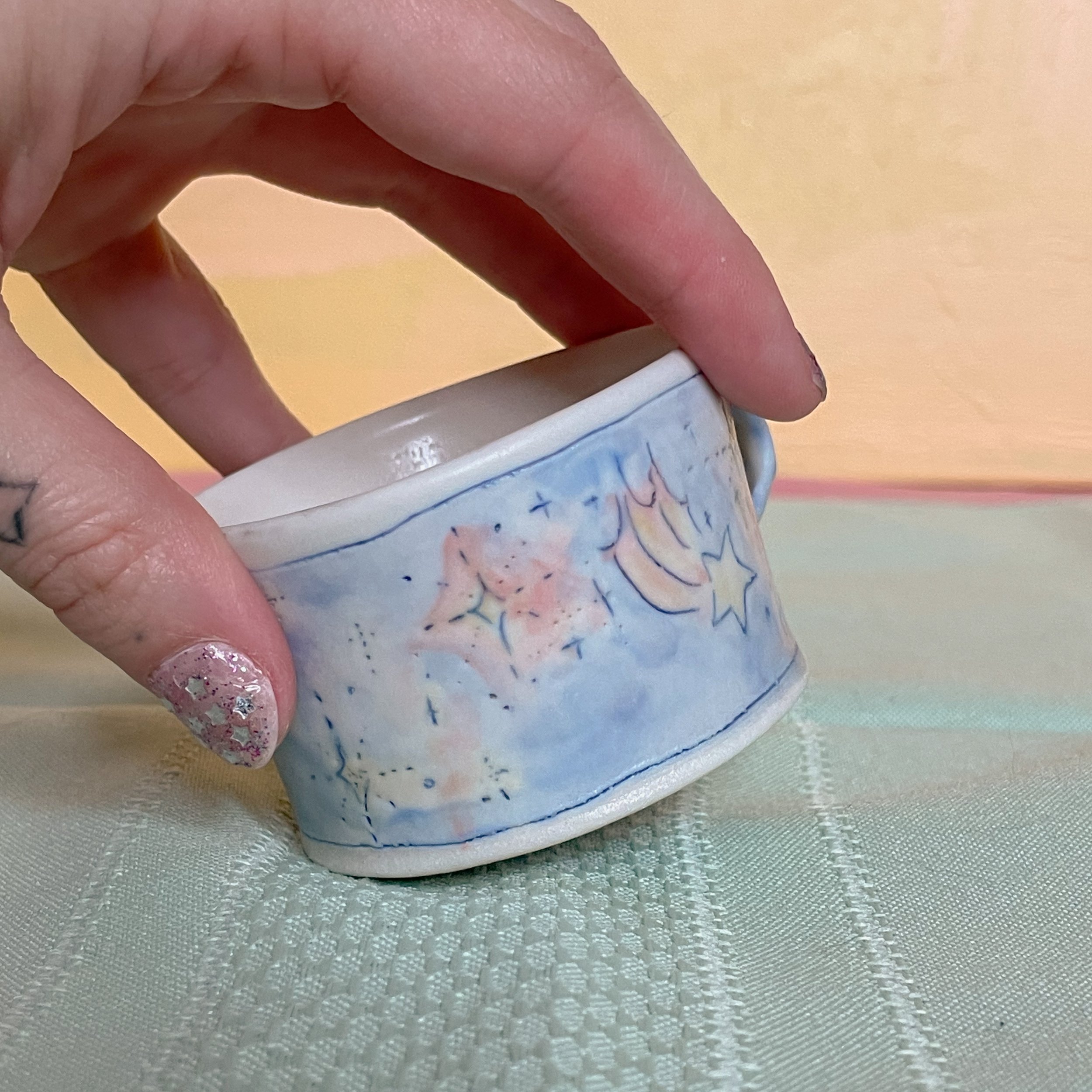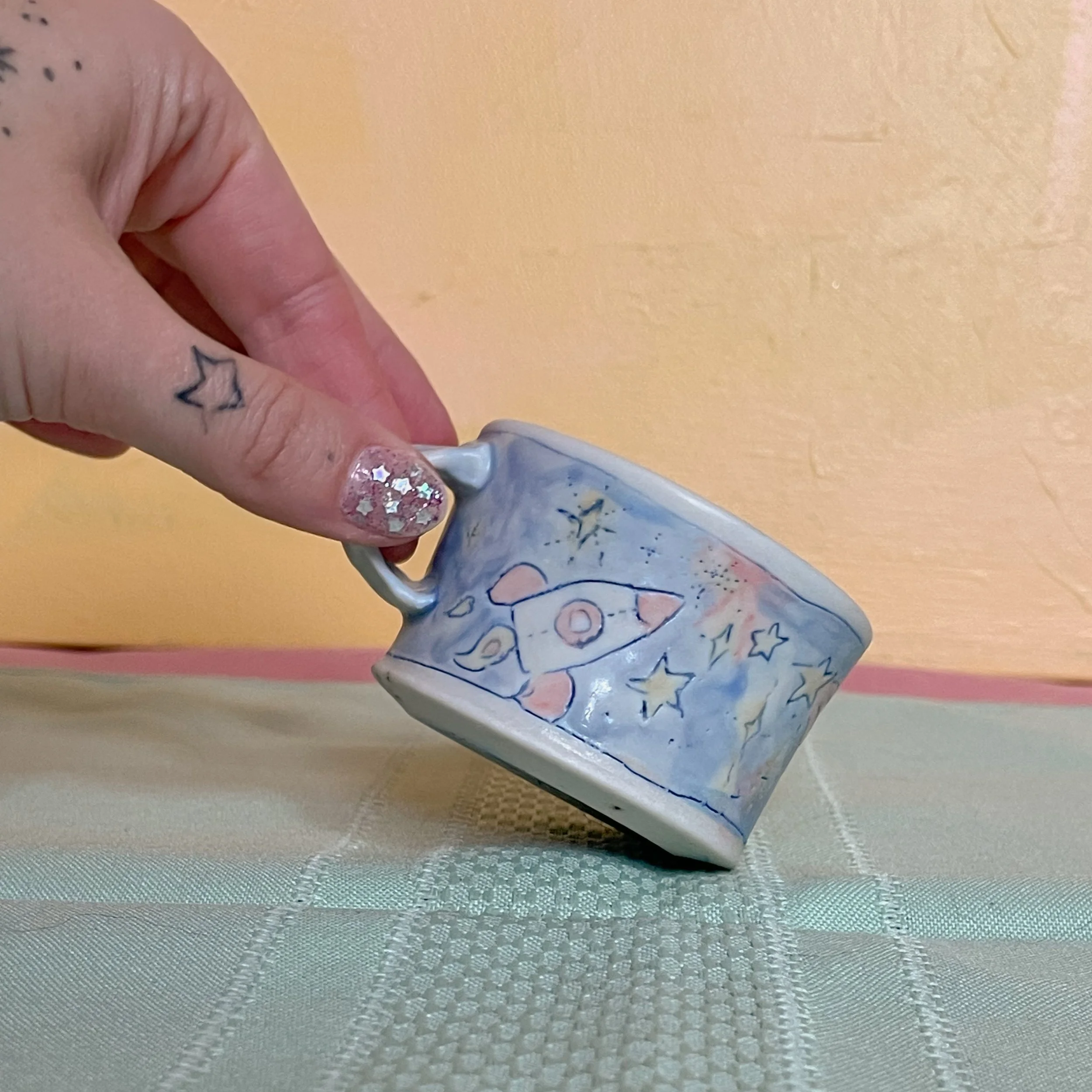 Super cute spacey espresso cup. Perfect for espresso or even a macchiato. Handmade from porcelain and finished with a satin matte glaze.